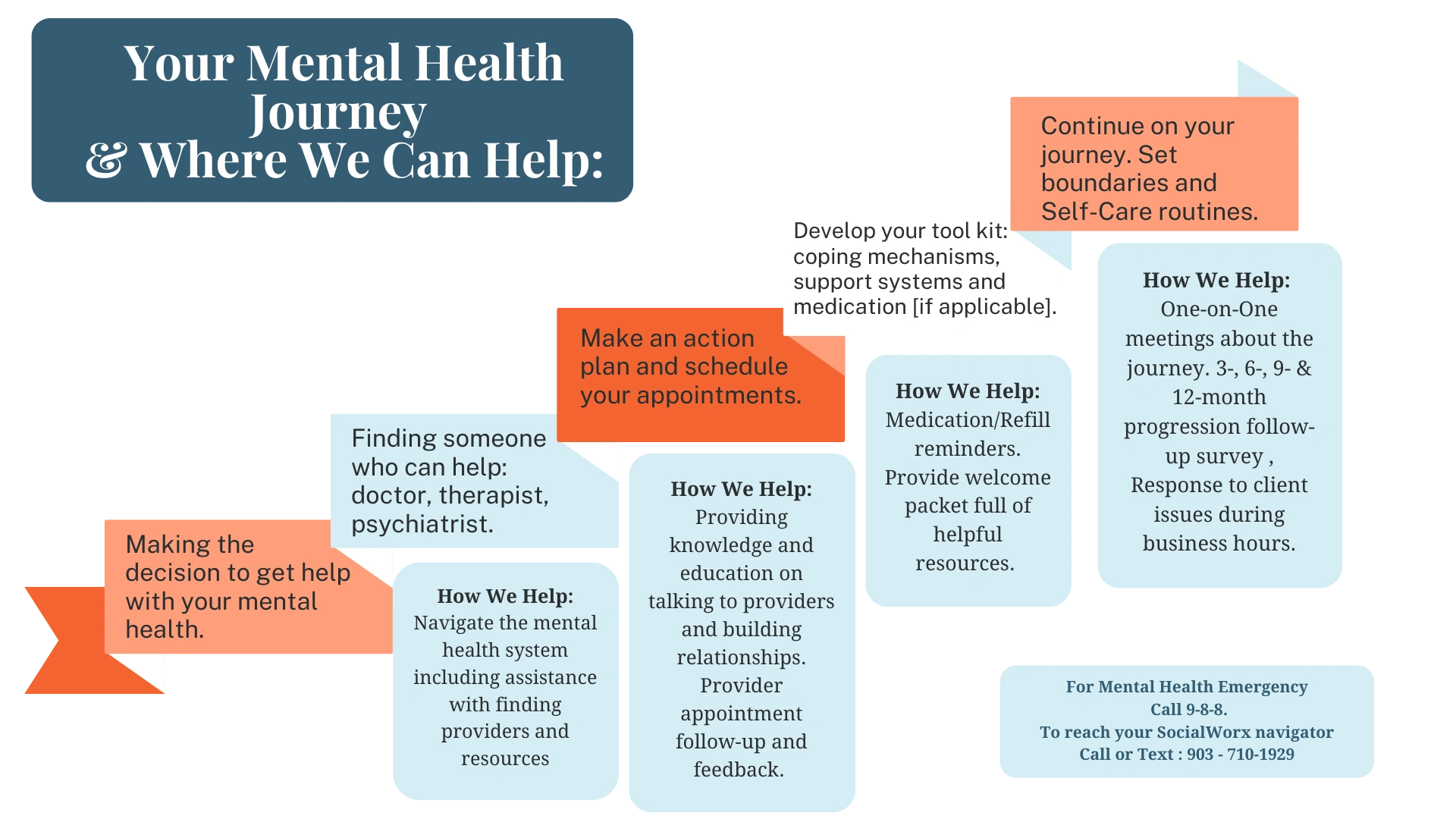 Our services are available to individuals and families residing in Smith, Henderson, Greg & Cherokee County who need help navigating mental health systems. We focus on empowering underserved populations in our community.